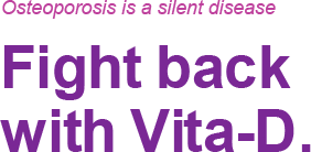 One-in-three women over 45 will develop osteoporosis, and this may lead to bone fractures. It gets worse. One-in-two women over 60 will develop a bone fracture due to osteoporosis. But you can fight back. Vita-D helps build strong bones and helps reduce the risk of falls and bone fractures. Ask your Pharmacist for Vita-D.